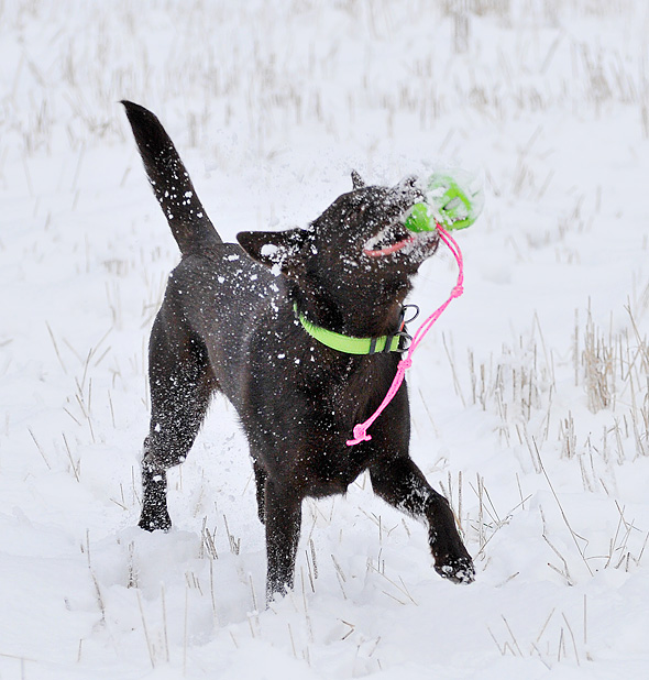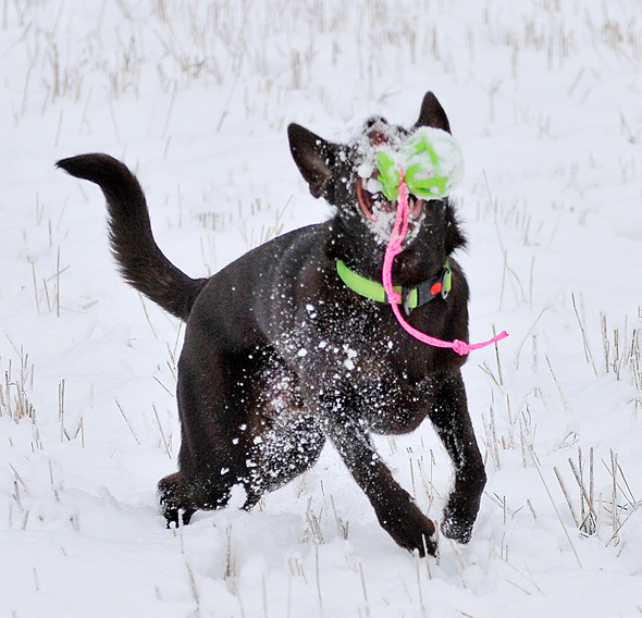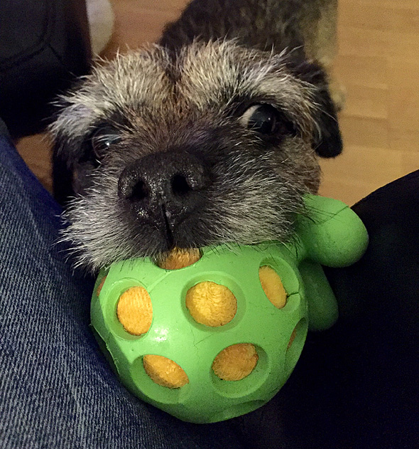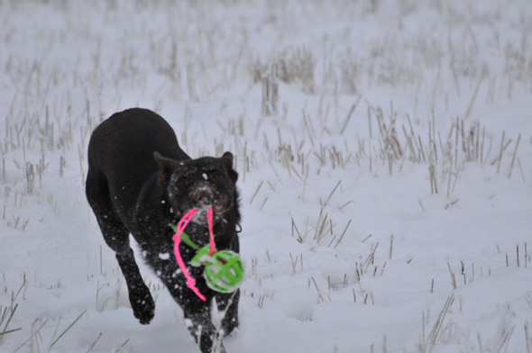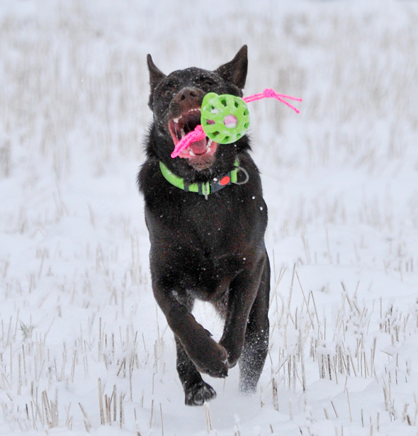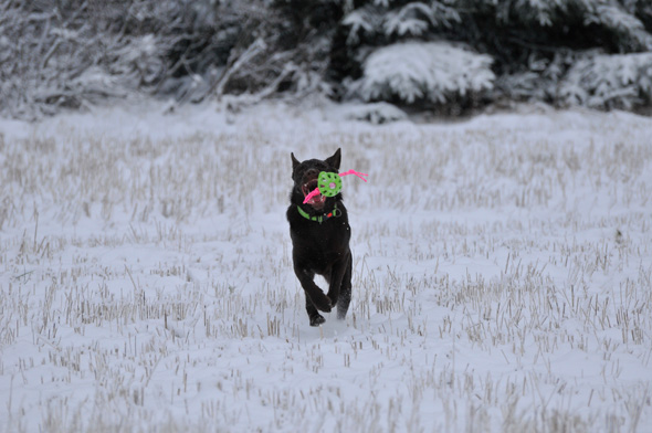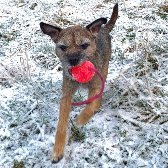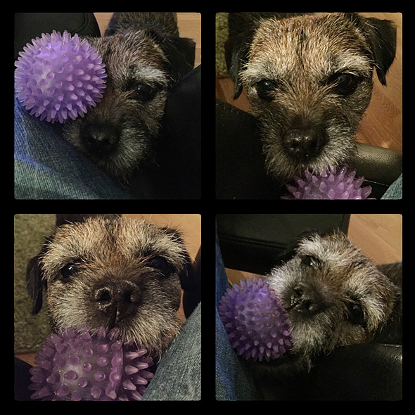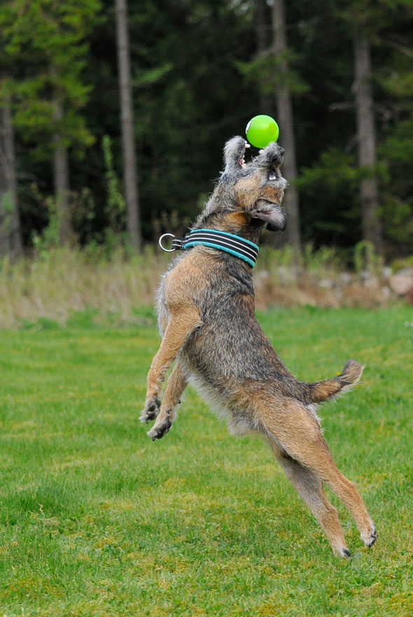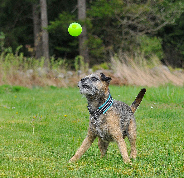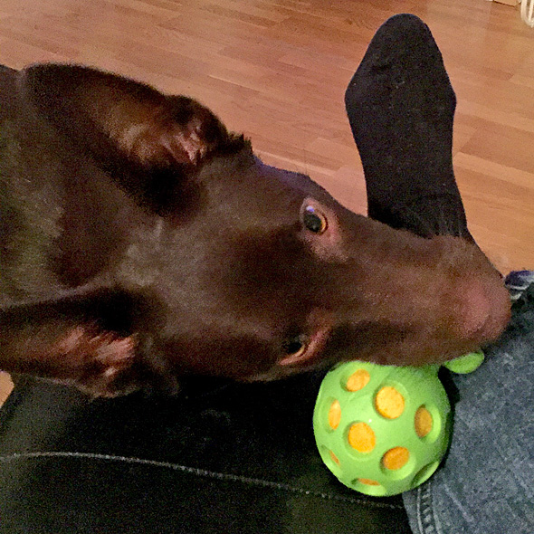 Karlsson tassar på i ullstrumporna och försöker upprätthålla våra traditioner, som t ex att hämta bollar av varierande slag till matte. Nu har Maro kommit på att det är en lönande verksamhet så stundtals har jag två hundar, med varsin boll, som pockar på min uppmärksamhet (och belöning) när jag slår ner rumpan någonstans. 🙂