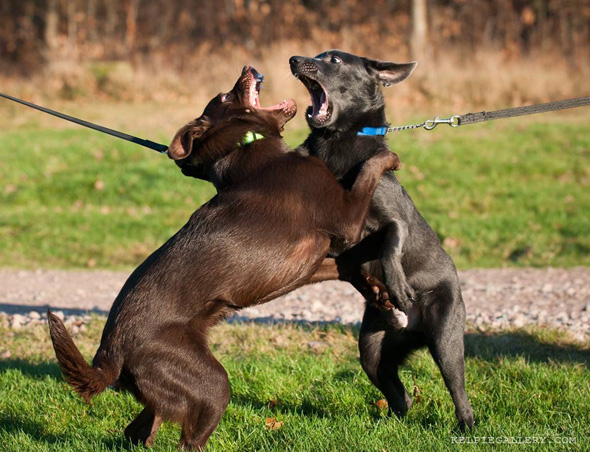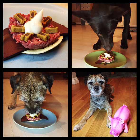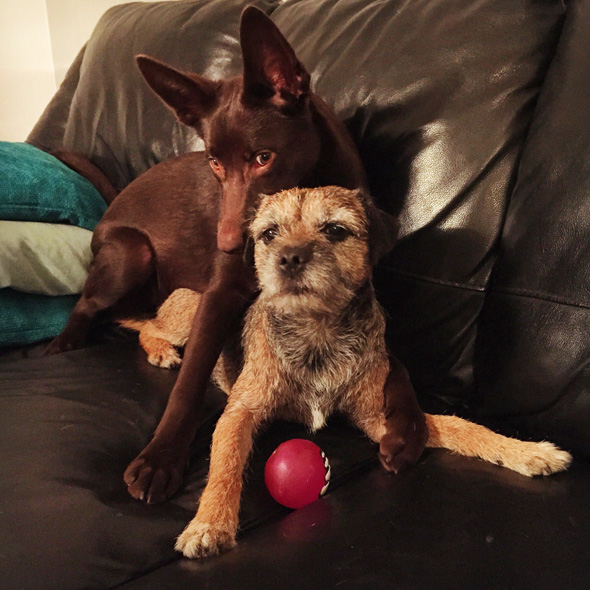 Efter att jag beskurit den, lättat hela bilden, justerat skuggorna (dvs hela den bruna hunden) och lagt på lite skärpa blev det så här. Genast en smula roligare.
