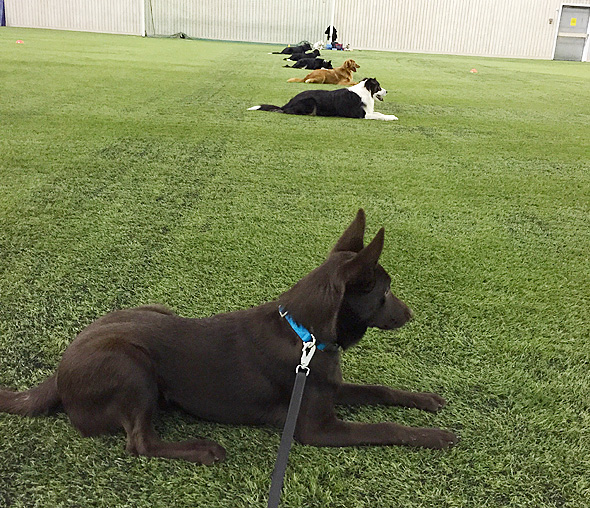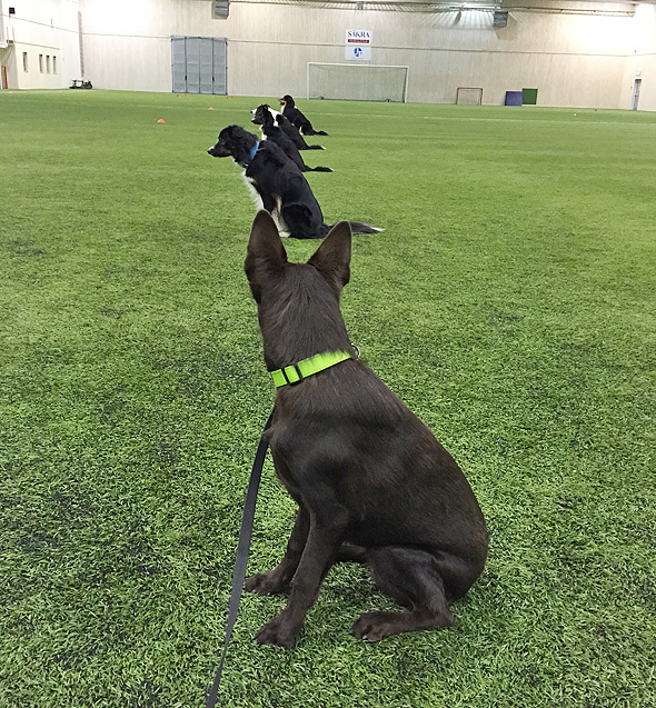Vi har fått möjlighet att träna i en fantastiskt fin, sprillans ny, fotbollshall i Ulricehamn tillsammans med ett härligt gäng människor och hundar. Maro har fått prova på gruppmomenten och det har han fixat jättefint. Naturligtvis med mig på koppellängds avstånd, mycket beröm och täta belöningar.