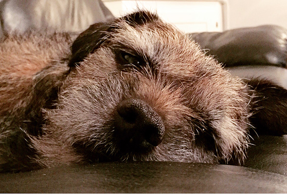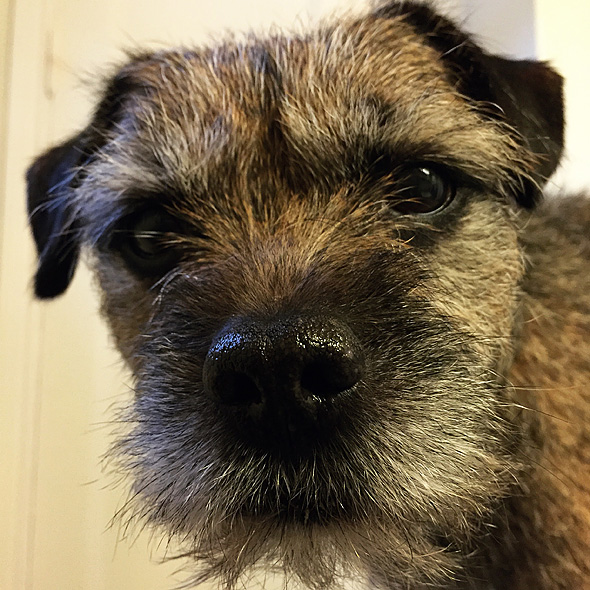 Jag har även hunnit trimma terriern, åtminstone så pass att han inte ser ut som om han reser ragg konstant. Kan ju vara trevligt att ha en hyfsat välvårdad hund när vi ska tävla rally på fredag. Som vanligt försökte han pussa sig ur situationen men jag gick inte på det den här gången heller. 🙂