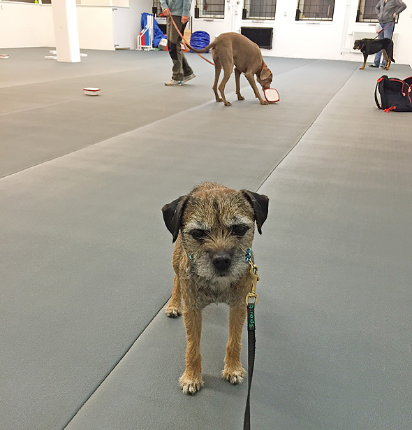I onsdags var det näst sista gången på nosework-kursen och nu händer det (äntligen) grejer. 🙂 Innan vi åkte hem hade vi kört både doftprov, som inför tävling, (x2) och rumssök med mycket lyckat resultat. Tänk att det kunde bli sån skillnad bara för att det blev en massa lådor att välja på (doftprovet)! Enda gången tassen åkte fram var när han hittade rätt låda och då var det inte hysteriskt på något vis utan mest ett ”pekande” för att bekräfta för mig att det var rätt. Själva markeringarna ska väl helst bli tydligare och gärna lite mer ”frys” men att han verkligen kopplat på näsan och förstått vad vi håller på med känns som ett jättestort framsteg. 🙂 Jag som hade bestämt mig för att inte gå fortsättningen börjar nästan tänka om… 😉 Bilden visar miljön för rumssöket men är tagen i efterhand.
