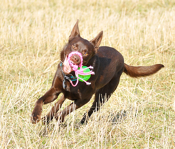 Sen blev det uppletande som för Maros del innebar hämta saker som låg i en synlig hög på några meters håll OCH KOMMA IN TILL MATTE! OCH ÄTA BACONOST! Nu börjar han förstå systemet. Några gånger till med sådana övningar, på lite större avstånd,så ska jag nog våga låta honom använda näsan också. 😉