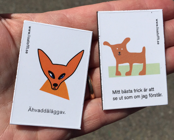 Vi hann dock med bl a Kivik, Sandhammaren, Simrishamn och Ystad och lite shopping blev det på vägen. Dessa kylskåpsmagneter kunde jag bara inte motstå. Påminner väldigt mycket om någon jag känner…