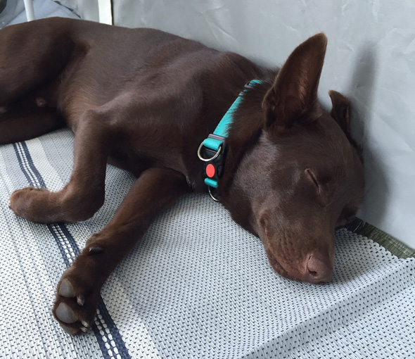 Maro tyckte det var spännande att bo på camping och hade mycket att hålla ordning på. Karlsson var tyvärr ovanligt ”hetsig” och skulle skälla på det mesta. När jag analyserade det hela kom jag fram till att när Iza var med så var hon chef. Om inte hon skällde (vilket hon mycket sällan gjorde) så gjorde inte han det heller. Förra sommaren var han ju ensam campinghund och det fanns ingen att larma så då var han också tyst och fin, men nu … har han en bror som gladeligen hänger på. 😛 En del onödig tid gick alltså åt till att försöka få tyst på hundarna…. Nåja, sååå farligt var det nog inte och som vanligt är det nog man själv som har mest ont av det.