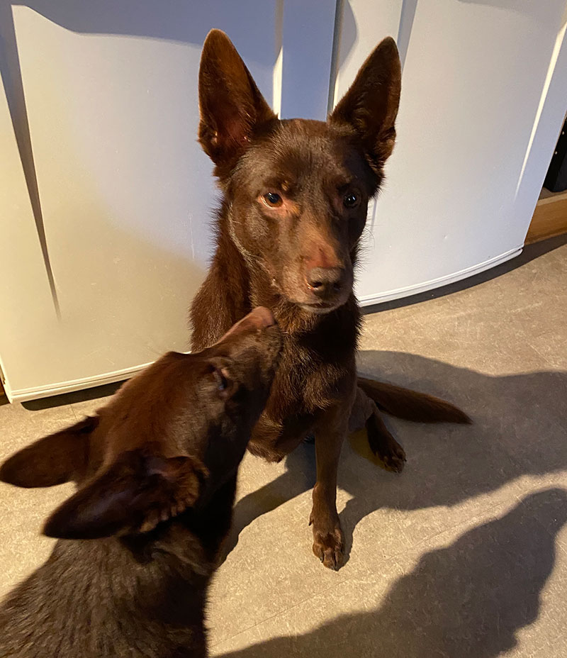 Vi avslutade dagen med spår här hemma i skogen när det började mörkna. Mörkerspår är inte riktigt min ”cup of tea” men vi överlevde utan brutna ben (och utan pannlampa) och på kvällen var hundarna ännu lugnare. Gullan/Skojja somnade en decimeter från Maros öra. ❤