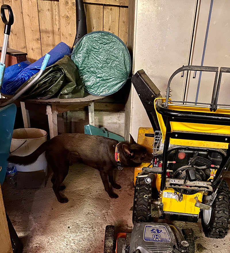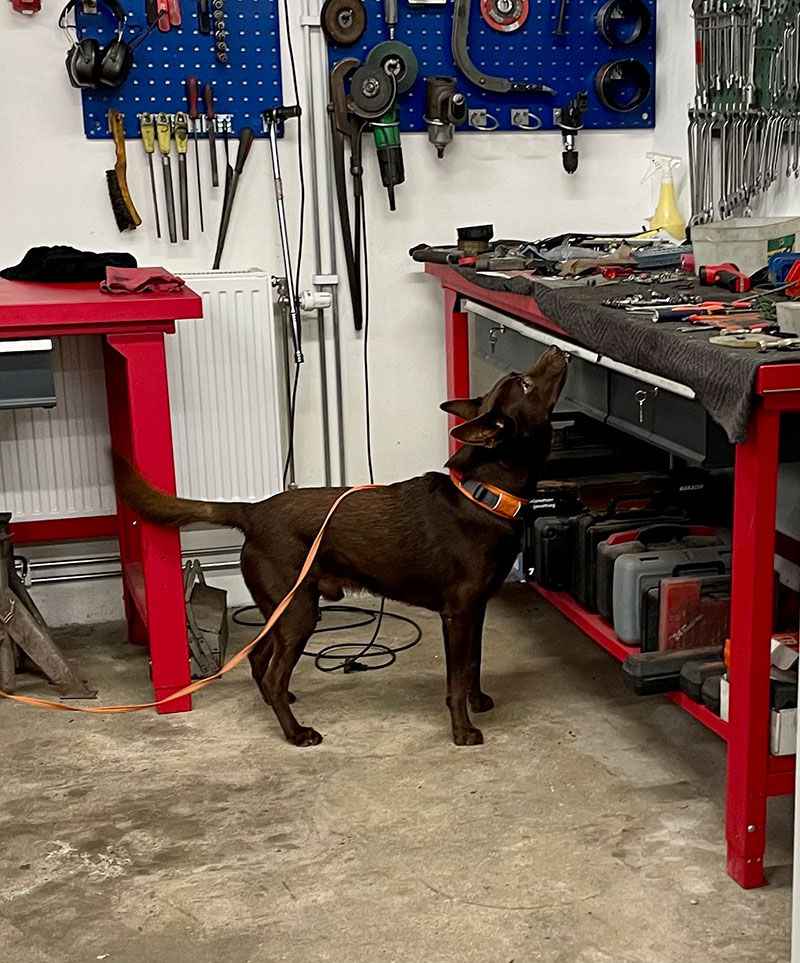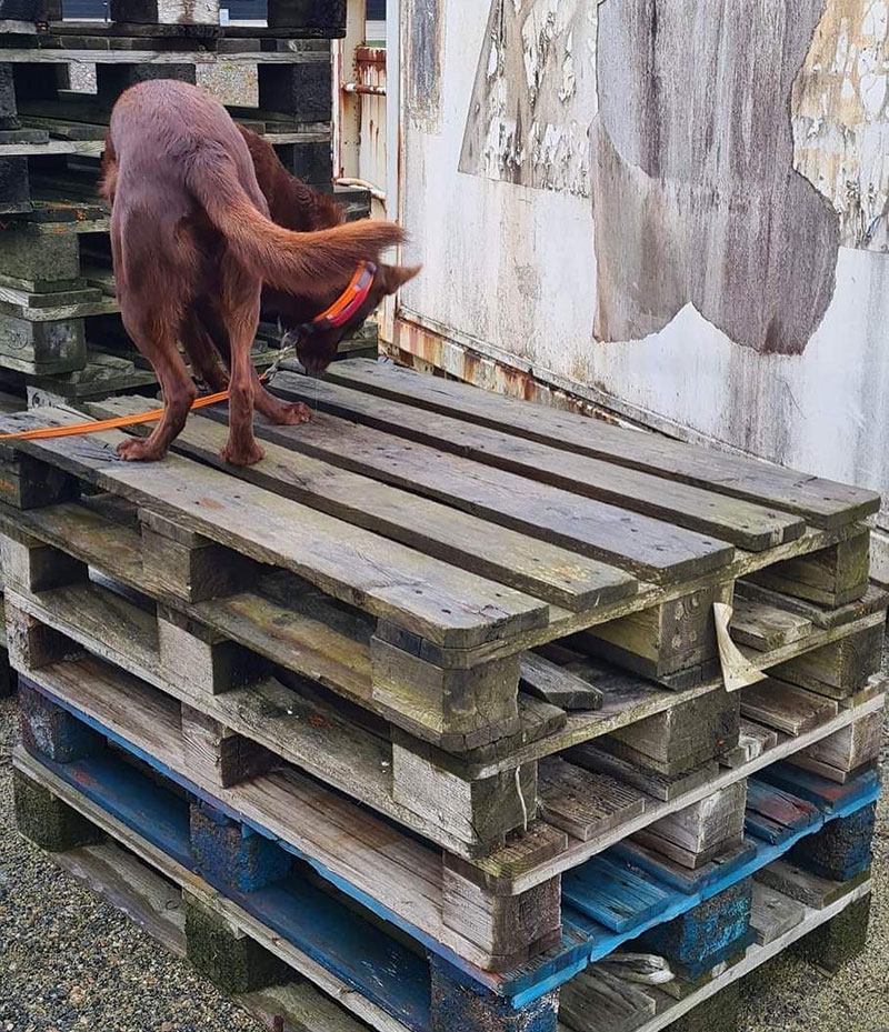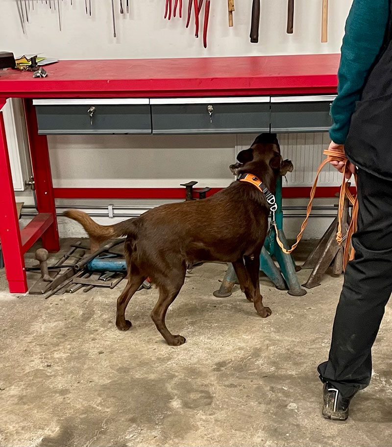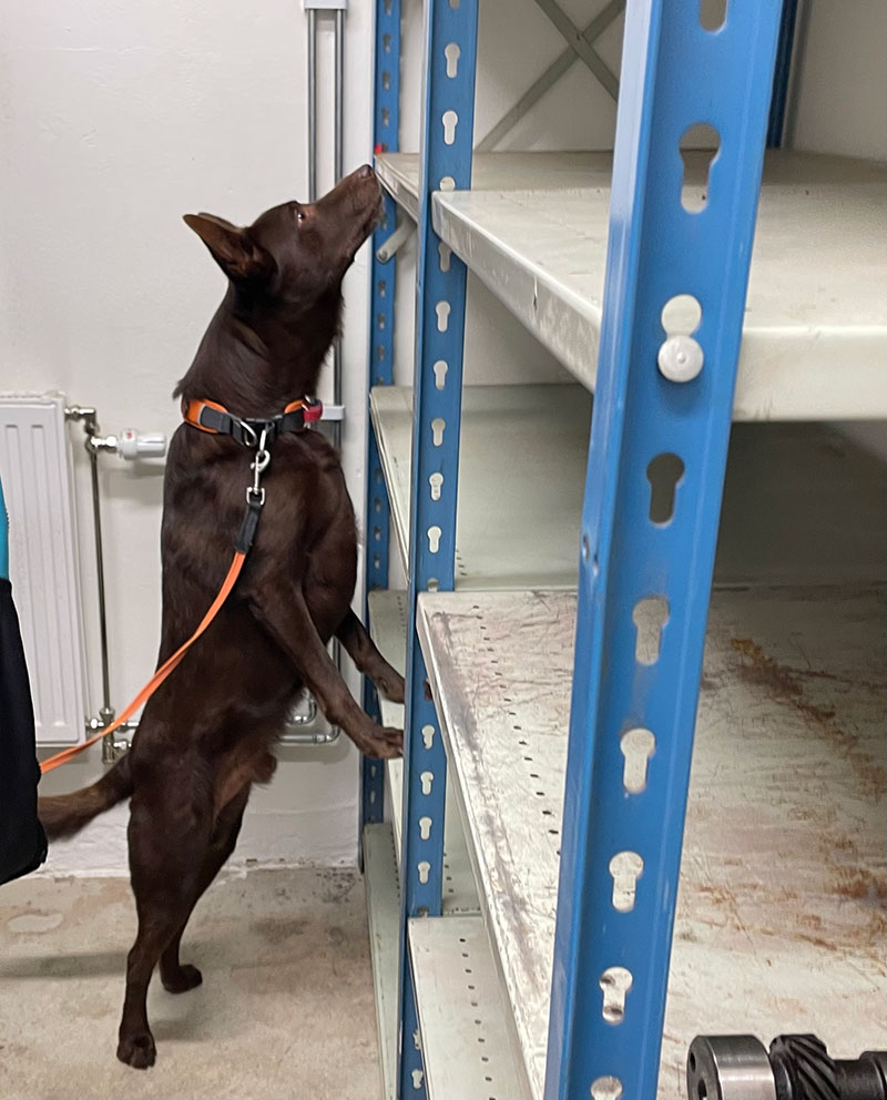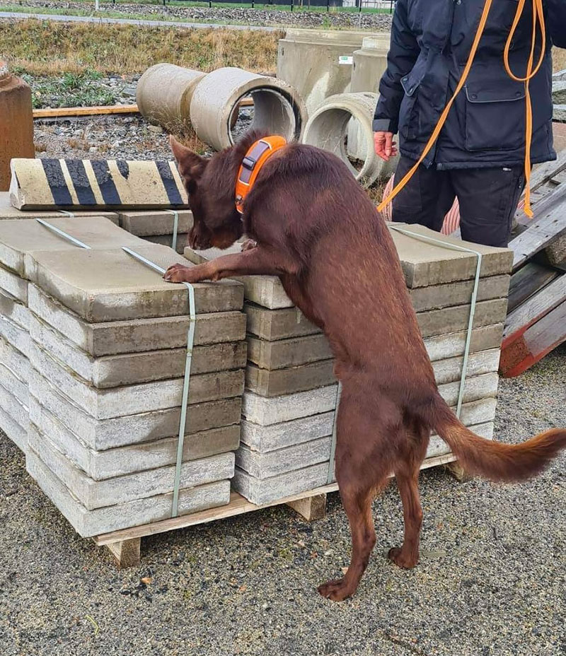 Sen var det dags för specialsök utomhus i miljö som var ny även för Maro vilket brukar tagga igång honom lite mer och jodå, han skötte sig riktigt fint. Det är rätt roligt att se hur pass lika syskonen är i sitt sökarbete och det är nog bara naturliga egenskaper. Djupa gömmor är svårt och låga gömmor som det går att markera underifrån vill de gärna markera ovanifrån även om det är tydligt att de haft gömman i näsan även från den låga positionen.