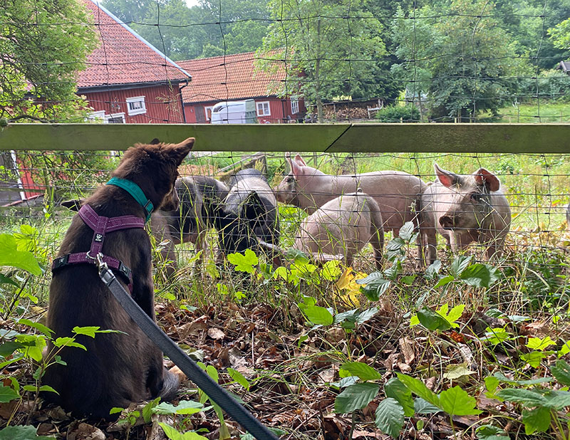Natten tillbringade vi på mitt vanliga, mysiga B&B. Det roligaste med det var – enligt Pyssel – grisarna! När vi passerade deras inhägnad första gången var han lite skeptisk och grymtade tillbaka lite försiktigt men gick inte nära. På morgonen dag två ville han inte gå därifrån utan att de följde med, vilket de nog gärna hade gjort. Det slutade med att jag fick bära honom därifrån. Nu har han skrivit upp ”grisar” på önskelistan till femmånadersdagen, på andra plats efter ”tax”. 😂