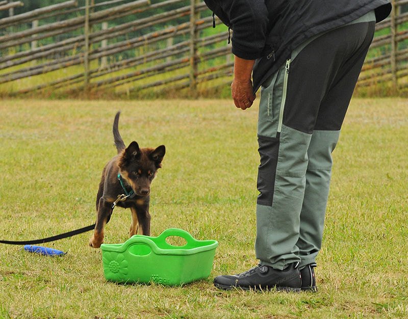 Pyssel har skött sig jättefint, ffa med tanke på hans ringa ålder. 🤩 Han firade sin fyramånadersdag på lägerdag två, den lilla Pyssel-biten. 🥰 Ny miljö, nya människor och nya hundar bekom honom inte det minsta även om han var nyfiken på både hundar och människor och naturligtvis pyste över i ett och annat valprace. Första dagen var han superduktig och då var vädret mer i hans smak (svalt och blåsigt). Dag två var varmare och han var nog lite trött i mössan också. Huvudsaken var dock att han tyckte allt var superroligt och inte kunde bärga sig innan han fick gå in på plan och göra sina pass. Han har även kört gruppmoment för första gången. Naturligtvis med mig nära och i koppel och han gjorde det bra. Det kändes skönt i mattehjärtat med tanke på hur jobbig den biten varit med Maro. Nu har vi iaf fått en lugn och trygg start. 😍