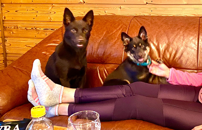 Vi fick iaf en trevlig fredag i skönt väder med lite lydnadsträning och bubbel. Lördagen var betydligt regnigare men vi spårade i alla fall och lite lydnad blev det även då. På kvällarna levde Skojja och Pyssel livet ihop i stugan. De funkar så fint tillsammans. Yra och Stila höll sig undan bäst de kunde. 🤣