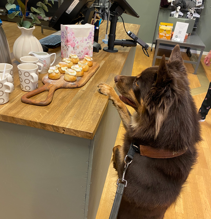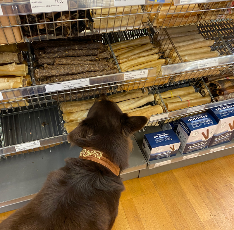 Födelsedagen har firats med shopping där han fick välja present. Det slutade med en påse tugg, lite gott och blandat. Leksaker har vi ju redan i överflöd så det blev inget idag. Dessutom hittade han ett halsband som han prompt ville ha. 😂