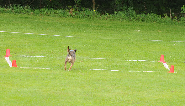 Rutan; 6 (dk, dk läggande) Här låste han sig vid mitt ben och skulle inte iväg så jag fick ta i lite extra. Jag fick stoopp på honom i rutan men då var det något luktagott som distraherade och han satte sig bara vid första ligg-kommandot så jag fick kosta på mig ett till.