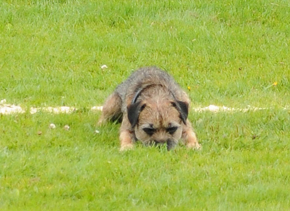 Här har han tjurat ihop på ”ligg” i fjärren. Och är man terrier och har bestämt sig (vilket