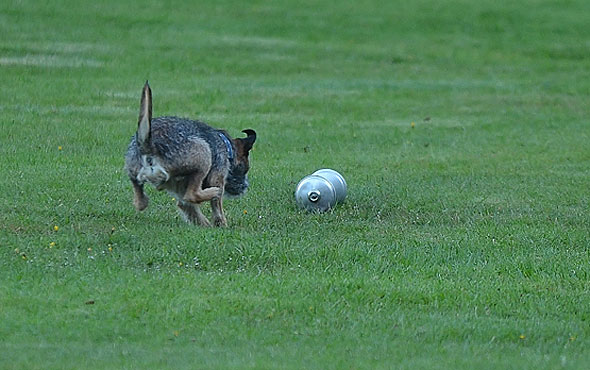 I måndags morse var det en hare som bestämt sig för att ta en liten tupplur (ungerfär när tuppen brukar vakna) på vår gräsmatta, precis framför strålkastaren med rörelsesensor. När jag kom ut med Iza (i koppel tack och lov) började den uppenbarligen vakna och sprattlade till så att strålkastaren tändes, bara några meter från Iza. En som också sprattlade var Iza…