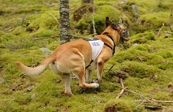 Idag var det Borås som stod på agendan. Samling redan 07.00 (för att slippa svampplockare i skogen i möjligaste mån antar jag) så det var uppgång 04.45 även om resvägen var kort. Spårläggaren känner vi, men vad hjälpte det? Man kunde ju ha trott att det varit lite mer intressant att följa vittringen från en känd människa, men tydligen inte?