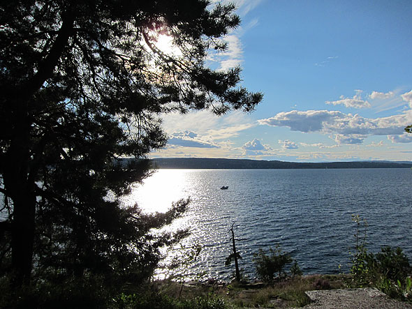 Efter en sällsynt varm och syrefattig dag på kontoret var det ljuvligt att ströva omkring på den vackra promenadvägen utmed vattnet och det blev ett antal pauser för att bara njuta av utsikten. Dvärgkameran fick jag med mig idag, se nedan.
