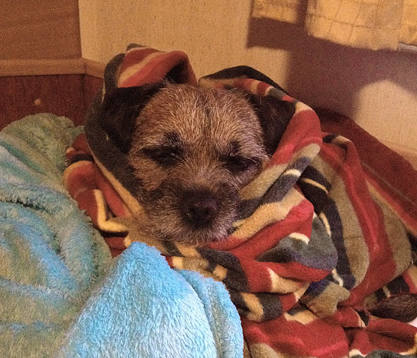 På natten blev det rätt kallt i vagnen eftersom jag inte fått igång värmen och på morgonen, i synnerhet klockan 06.00, tyckte Karlsson det var fantastiskt onödigt att gå upp. När jag dessutom stoppade om honom ordentligt tyckte han att han kunde ligga kvar lääänge. Det blev dock inte så mycket med det. 🙂