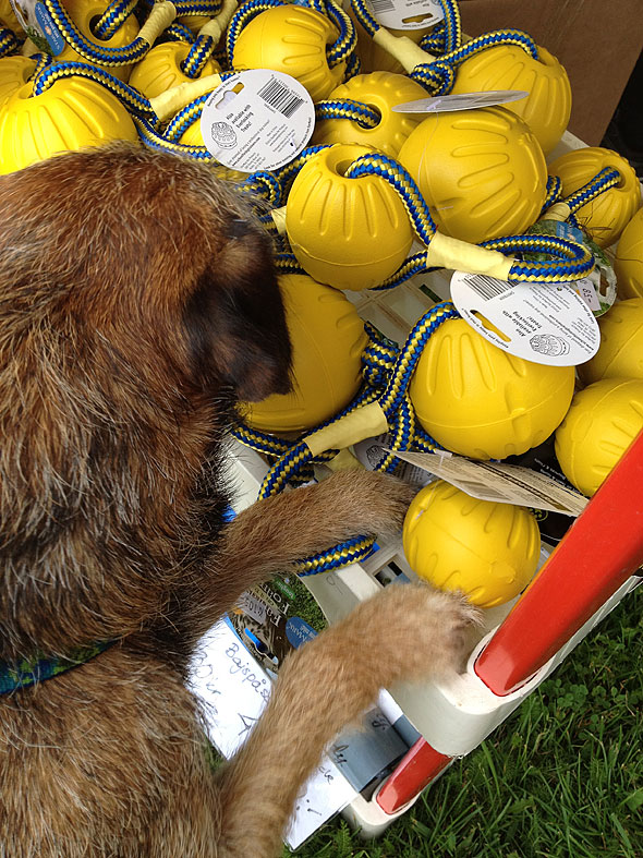 Sen åkte vi tillbaks till tävlingsplatsen på Axevalla och Karlsson försökte bestämma hur han skulle spendera veckopengen. Någon sådan här boll blev det inte eftersom han inte kunde välja vilken av dem han skulle ha. 🙂
