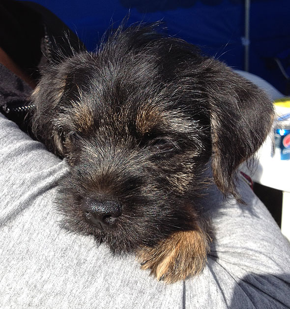 Att han inte var i toppform idag fick jag bekräftat när vi var klara och jag satte mig vid sidan av plan för att titta på resten av tävlingen. Normalt brukar han vara rätt odräglig att ha med så men han la sig alldeles frivilligt ner i skuggan bakom mig, eller satt i mitt knä. Så lite sliten är han nog efter fyra veckors semestrande varav en vecka på läger…