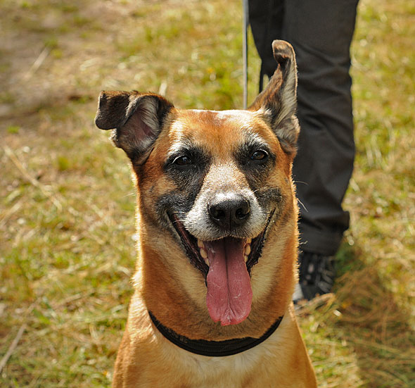 Detta var Farbror Bosses allra sista tävling, efter en helt strålande karriär. Bl a har han på sina åtta år tävlat sex SM i tre olika grenar (skydd, spår, sök), tagit 22 cert, blivit Årets Skyddshund och Nordisk Mästare i skydd samt tävlat Mondioring. Slå det den som kan! Dessutom är han en utmärkt terrierskrämma. 😉