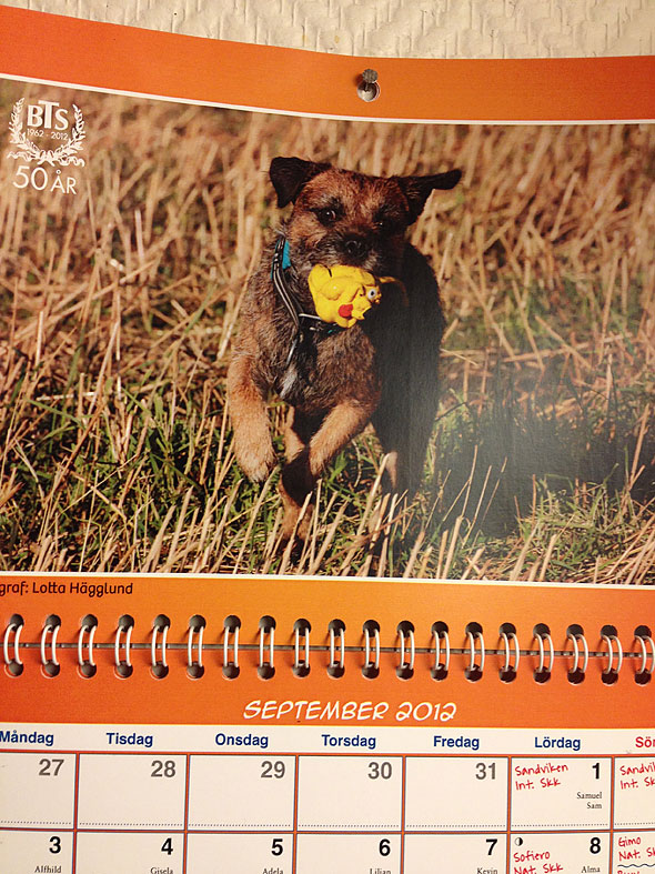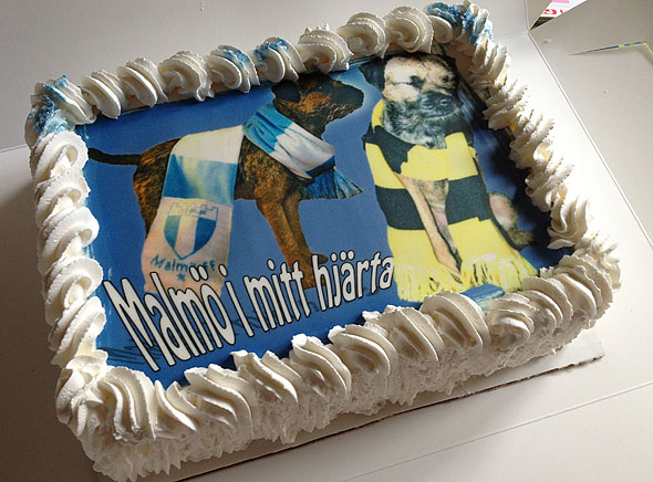 Igår eftermiddag landade terrierns uppfödare här hos oss. Idag söndag vankas det (just i skrivande stund) fotboll på Borås Arena. Närmare bestämt Elfsborg – Malmö, där hussarna just nu befinner sig. Med sig i bagaget hade K och T den här: