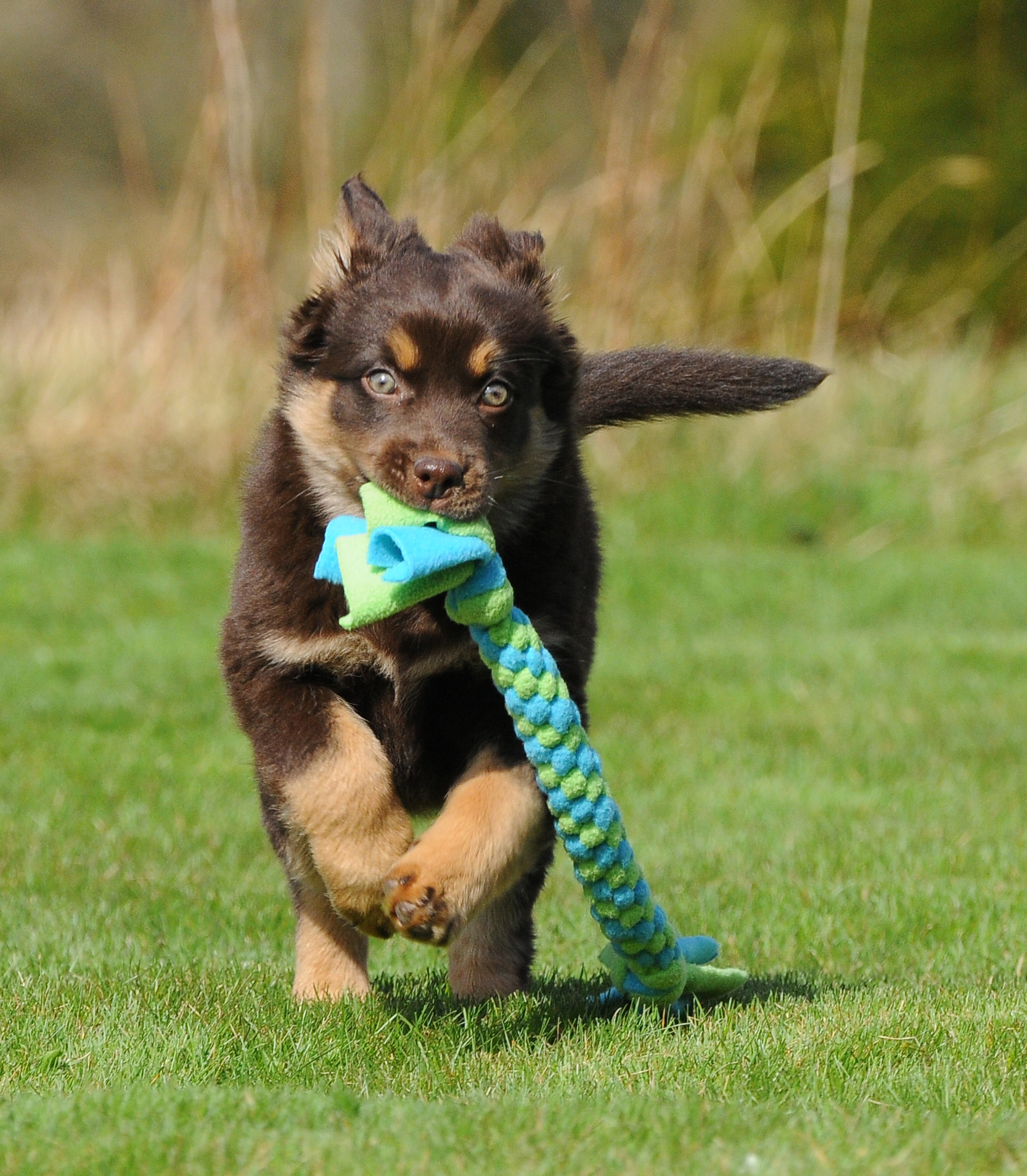 Andra egenskaper: Som sagt; han är inte ens 10 veckor så vi lär oss fortfarande men han är hungrig, livlig, busig, odräglig, river och biter i allt, ska smaka på allt och förvandlas till en gremlin på kvällarna. Han är alltså ungefär som en valp i den åldern ska vara. Han är cool, trygg, nyfiken och social med mycket egen vilja och leker obekymrat så fort det erbjuds i de olika miljöer vi hunnit prova. Han verkar ha en bra spårnäsa som han visat spontant ett par gånger och den hoppas jag att jag kan utveckla åt rätt håll.